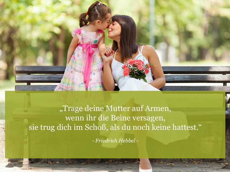 Trage deine Mutter auf Armen, wenn ihr die Beine versagen, sie trug dich im Schoß, als du noch keine hattest. (Friedrich Hebbel)