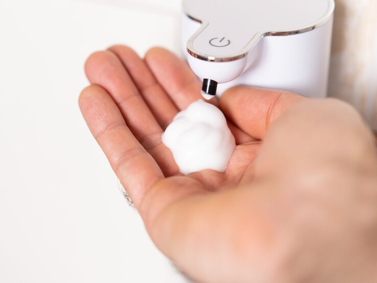 Hast du auch einen No-Touch-Seifenspender zu Hause? Der ist superpraktisch, oder? Du hältst die Hände darunter und automatisch landet eine Portion Seife auf der Haut. Diese geniale Funktion kannst du dir zunutze machen und den Seifenspender in einen für Gesichtswasser umwandeln. Du brauchst dann nur dein Wattepad in die Nähe des Sensors zu bringen, und schon spuckt der Spender Gesichtswasser aus. So einfach geht es: